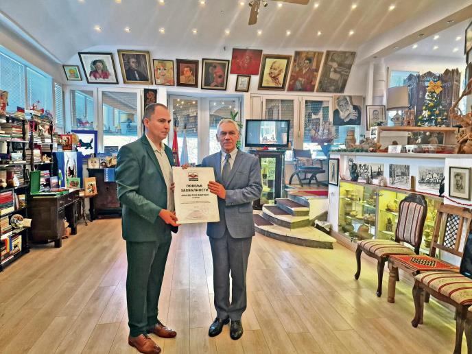 Sad je u Muzeju knjige i putovanja Udruženja za kulturu, umetnost i međunarodnu saradnju Adligat dragoceni poklon predat u prisustvu ambasadora Rusije u Srbiji Aleksandra Bocan-Harčenka.