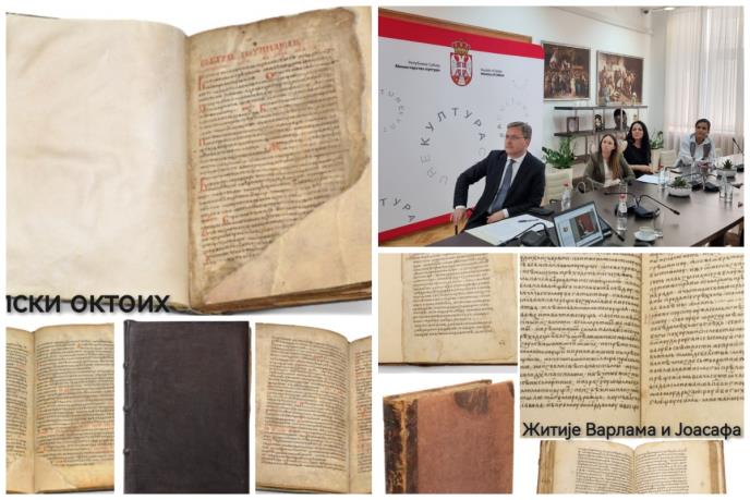 Srbija je na današnjoj aukciji u Londonu kupila dva značajna srpska srednjovekovna rukopisa: "Srpski oktoih" i "Žitije Varlama i Joasafa", čime će biti obogaćen fond starih i retkih knjiga Narodne biblioteke Srbije.