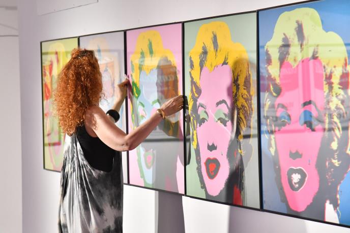 Izloženi su portreti Merilin Monro, Marte Grejam, zatim planetarno poznate limenke supe "kembel", kao i "Svemirsko voće", "Cveće"...