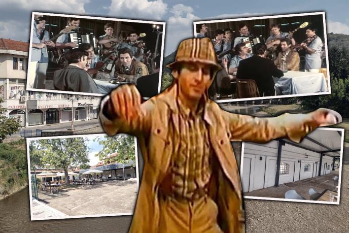 Tako smo naišli i na čuvenu kafanu na vlasotinačkom keju blizu brane, gde je snimana legendarna scena iz "Vrućeg vetra" (serija emitovana 1980. godine). Borivoje Šurdilović( Ljubiša Samardžić) sav snužden, jer ide u tuđinu kod Boba (Bora Todorović) naručuje pesmu "A sad adio".