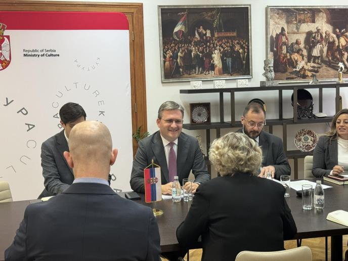 Ministar kulture Nikola Selaković sastao se sa šeficom američke delegacije pri Međunarodnoj alijansi za sećanje na Holokaust (IHRA), specijalnom izaslanicom Stejt Departmenta za pitanja Holokausta Elen Džermejn.