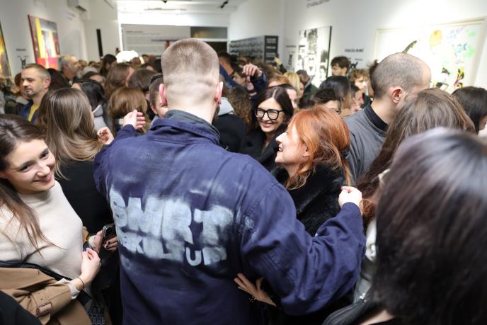 Galerija Monolog je bila mala da primi sve posetioce koji su došli na otvaranje izložbe “Nismo umetnici”, pa se u ulici Kralja Petra napravio dugačak red.