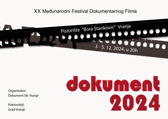 Međunarodni festival dokumentarnog filma pod nazivom “Dokument 2024”, biće održan u Pozorištu "Bora Stanković" u Vranju. Festival će biti otvoren u utorak u 20 sati. Festival će i ove godine biti održan pod pokroviteljstvom Grada Vranja i u