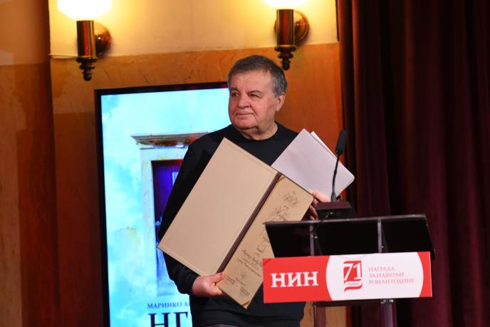 Svečano uručenje 71. Ninove nagrade za najbolji roman objavljen u 2024. godini na srpskom jeziku održano je danas na Kolarcu. Ovogodišnji laureat Marinko Arsić Ivkov primio je priznanje od svog prethodnika Svete Grabovca. Odluku da pobedi roman "NGDL" doneo je žiri u sastavu Aleksandar Jerkov (predsednik), Adrijana Marčetić, Tamara Mitrović, Vladimir Gvozden i Mladen Vesković.
