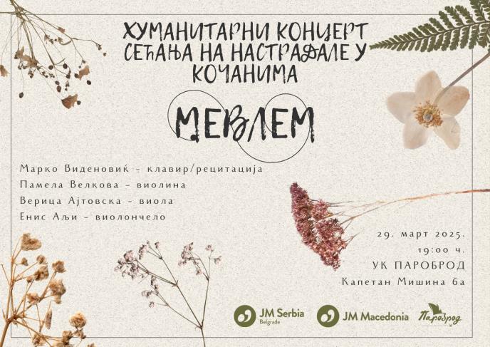 Pridružite nam se – neka „Mevlem“ (srp. melem) bude lek za celo naše društvo. Koncert će se održati 29. marta u 19 časova u UK Parobrod.