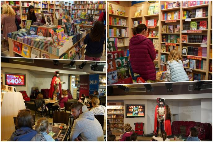 I subota je bila prepuna uzbudljivih dešavanja u knjižari Delfi SKC: deca su najpre uživala u predstavi Dečjeg kulturnog centra, "Avanture Kraljevića Marka", po tekstu književnika Slobodana Stanišića, u režiji Snežane Bećarević Popović, u izvođenju Gorana Joksića, nakon čega su učestvovali i u zanimljivoj glumačkoj radionici.