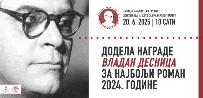 Nagrada "Vladan Desnica" za najbolji roman u prošloj godini, koju pisci dodeljuju piscima, biće uručena dobitniku 20. juna, a u uži izbor je ušlo pet romana, saopštili su iz Narodne biblioteke Srbije.