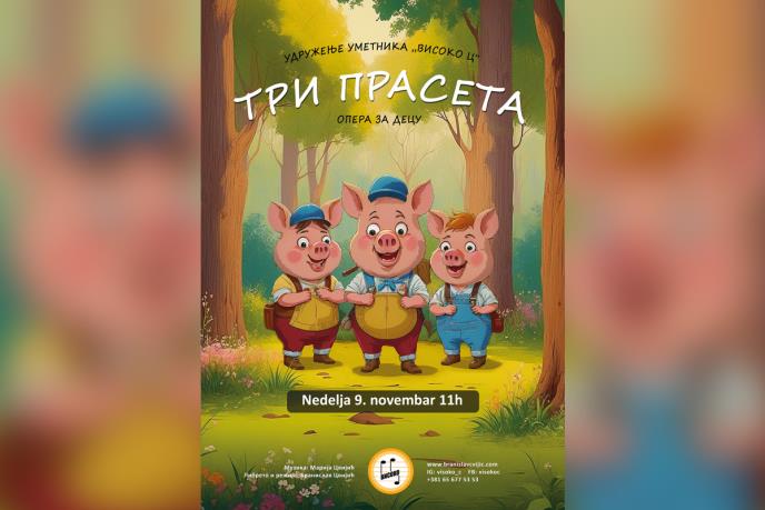 U nedelju, 9. novembra u 11 časova, na sceni Madlenianuma biće izvedena vesela i poučna opera za decu „Tri praseta“, nastala u saradnji sa udruženjem umetnika „Visoko C“.