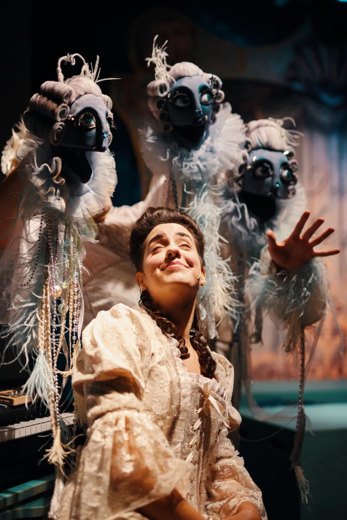 Glumica Ksenija Mitrović: “Kao devojčica sam bila fascinirana klasičnom muzikom, doduše, priznajem, najpre Čajkovskim. Zato sam i poželela da idem u muzičku školu, pa sam upoznala i dela Mocarta, Betovena itd. I evo, nekoliko godina kasnije, u predstavi sviram Mocarta! Naravno, to za mene nije lak zadatak, ali moram priznati da, što se mene tiče, svaki izazov koji nas pomalo plaši - a ipak malo više uzbuđuje, doprinosi sveukupnom glumačkom zadovoljstvu i inspiraciji. Mislim da će ova predstava biti dobra mešavina dečje zaigranosti i humora, a opet i tog uzvišenog operskog jezika. I ceo proces je bio takav - dosta šale, a onda gledamo kako da to malo uobličimo i utegnemo. Da nije bilo tako, ne verujem da bi nastala baš ovakva predstava. Iako zahtevan zbog svog muzičkog elementa, rad na predstavi je bio prilično neopterećen i zabavan, za šta je zaslužan i vedar duh rediteljke, koji je i nas sve povukao da - bez pritiska i blama, uronimo u svoje ideje, šale, predloge, makar oni bili preterani ili netipični i neobični. Humor je veliki deo naše predstave (nadamo se!), a to je zato što smo se i mi sami mnogo smejali i zabavljali. Renata je neko kod koga se oseti radost života, a vrlo je moguće da to delom dolazi i od njenog porekla, i meni je bilo značajno da osetim da je to i u radu moguće, posebno u vezi s novom okolnošću - sviranjem klavira - i to Mocarta, u predstavi, i da shvatim da to nije toliki bauk.”