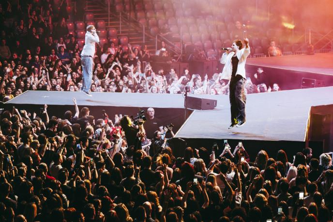 Dodatno zapalivši atmosferu na scenu je stupio i veliki Vojko V koji je i izveo freestyle na hit pesmu “Nema ljubavi u klubu” i “Ne može”. Buč Kesidi su nastavili s hitovima “Curimo po asfaltu” i “Subota”, a pojačanje su dobili uz maskiranog repera Devita koji je s Nadiom izveo svoje pesme “Amsterdam” i “Ego”. Ne spuštajući intenzitet bend je dodavao singlove “Suze u očima”, “Nebitna (...ne mogu da)” i “Idemo do hodnika” na svoju setlistu, a kao još jedni gosti pridružili su im se i slovenački Džoker aut na singlu “Bluza”. Veče u Areni je kulminiralo megahitovima “Nedjelja ujutru”, “Tužne ljubavi” i “Đuskanje ne pomaže” s tridesetak fanova koji su pohrlili na binu.
