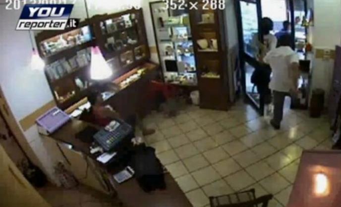 Pošto su mu razbojnici verovatno već dozlogrdili, jedan sicilijanski juvelir je braneći svoju zlataru lopove nagnao u beg išutiravši jednog od njih u zadnjicu, a o tome svedoči i snimak nadzorne kamere postavljen na Jutjub.