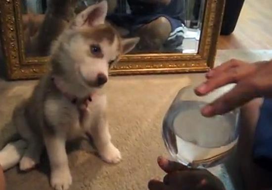 Psi su po prirodi radoznale životinje pa ne čudi što se mali haski duboko skoncentrisao da shvati kako to jedna obična vinska čaša ispušta čudne zvuke.
