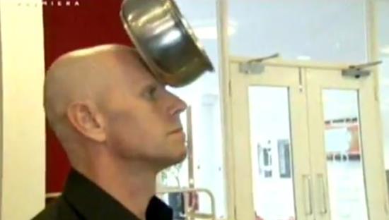 Ne, ne radi se o triku. Kako tvrdi ovaj Nemac, on poseduje toliko jake mentalne sposobnosti da može čak i da skače dok su metalne konzerve, čajnici, "zalepljeni" za njega.