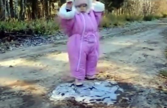 BUPNULA: Devojčica prvi put pokušala da hoda po ledu!