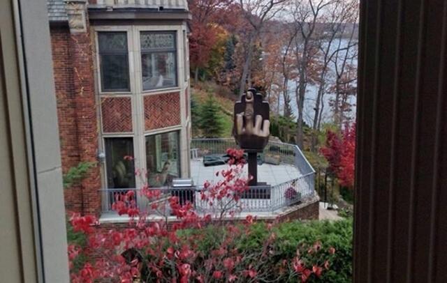 Ispod prozora bivše podigao statuu sa ispruženim srednjim prstom!