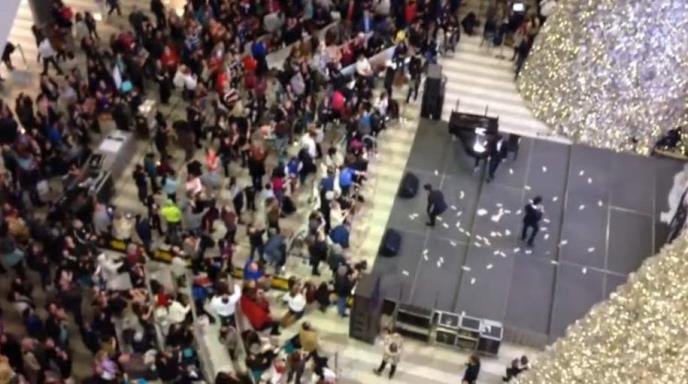 On je usitnio novčanicu od 1.000 dolara u novčanice od dolar, dva...i počeo da ih baca kupcima u šoping centru u Americi. Ovaj mladić kaže da je bacio poslednjih hiljadu dolara, jer je želeo da uradi nešto lepo za druge.