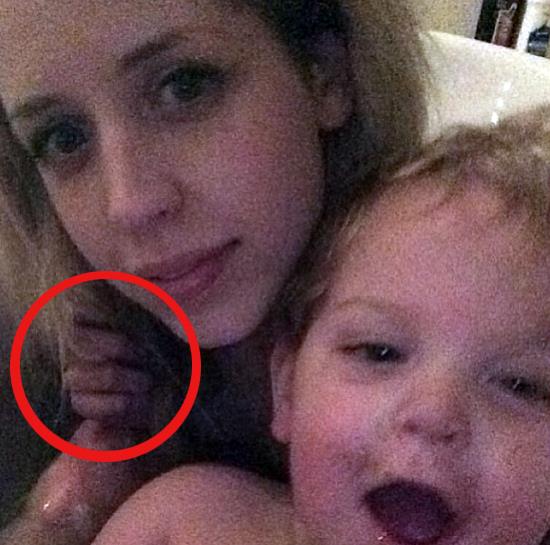 Ona je napisala na Instagramu da se ne radi o njenoj ruci jer je u tom trenutku jednom rukom držala fotoaparat, a drugom oko struka grlila sina