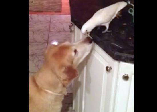 I dok ljudi u većini slučajeva moraju da uče o tome kako biti blagonaklon i dobronameran prema drugima, životinje to nekako rade instinktivno. To dokazuju i ova dva neobična prijatelja. Papagaja nije mrzelo da rezancima sa stola nahrani svog prijatelja.
