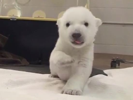 POGLEDAJTE KAKO MU IDE: Mali polarni meda pravi svoje prve korake!