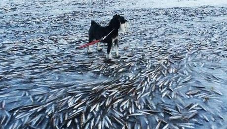 Jedan stanovnik norveškog sela Lovund primetio je čudan prizor šetajući psa. Zbog niskih temperatura zamrzla se voda u zalivu, a u njoj i riba.