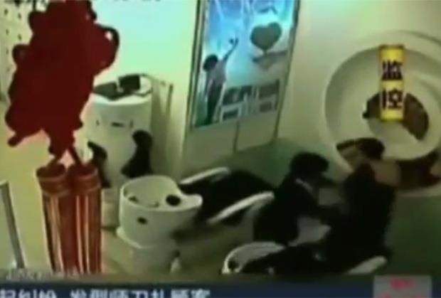 Cela situacija je snimljena nadzornom kamerom, a snimak prikazuje frizera, koji je imenovan samo kao Bao, kako prilazi mušteriji i zabija mu makaze u prsa.