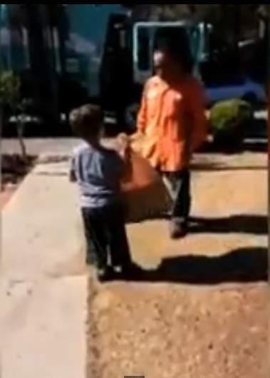 Ona i inače često snima dan odnošenja smeća, dan koji njen sin tako željno iščekuje, pa je tako srećom zabeležila i kada je čovek u narandžastoj uniformi, sa kesom iste boje, uz širok osmeh prišao dečaku i iznenadio ga poklonom.