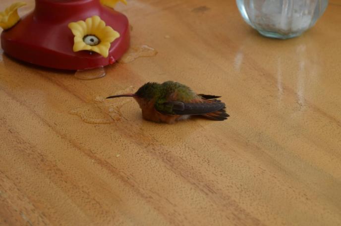 Mali kolibri je bio potpuno ošamućen. Nije mogao da poleti. Lak plen za svakog predatora. Na svu sreću dvoje dobrih ljudi su ga spazili i rešili da mu pomognu.