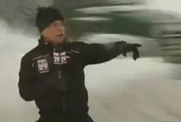 Stiv Kili, reporter televizije Foks 29, izveštavao je o stanju na putevima zbog snežne mećave koja je pogodila istočnu obalu SAD kad mu se desilo nešto potpuno neočekivano.