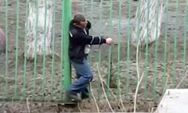 RUSIJA - Ko zna kako se usred bela dana našao pred ogradom koja je za njega bila nepremostiva prepreka.