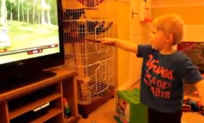 Pogledajte ovog preslatkog mališana koji je potpuno ubeđen da svojim "čarobnim" štapićem kontroliše TV.