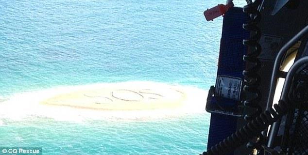Grupa od tri muškarca i dve žene koji su devet sati bili zarobljeni na stenovitom ostrvu u vodama centralne obale Kvinslenda (Australija) spaseni su helikopterom, nakon što su na obližnjem peščanom sprudu ogromnim slovima ispisali SOS signal.