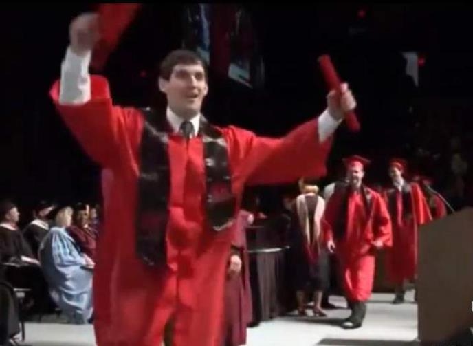 Momak je dobio diplomu, a od sreće poželeo je da uradi jedan salto unazad, ali njegova ideja se nije završila najslavnije, jer je pao na nos i osramotio se