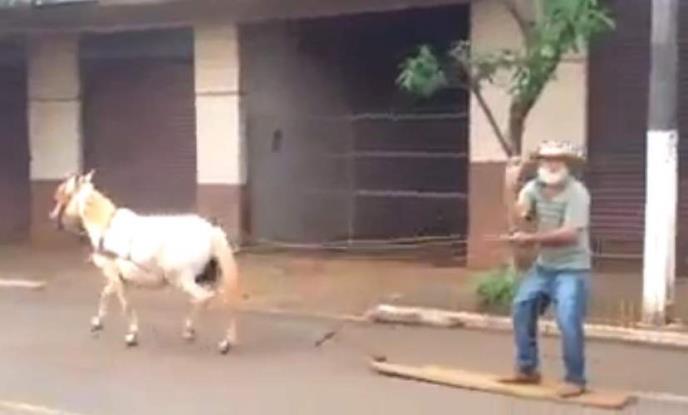 Jedan stariji Brazilac izmislio je novi način prevoza. Sve što vam je potrebno je konj i daska. I to funkcioniše, verovali ili ne