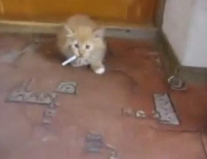 Pogledajte ovu macu koja obožava da gricka cigarete.