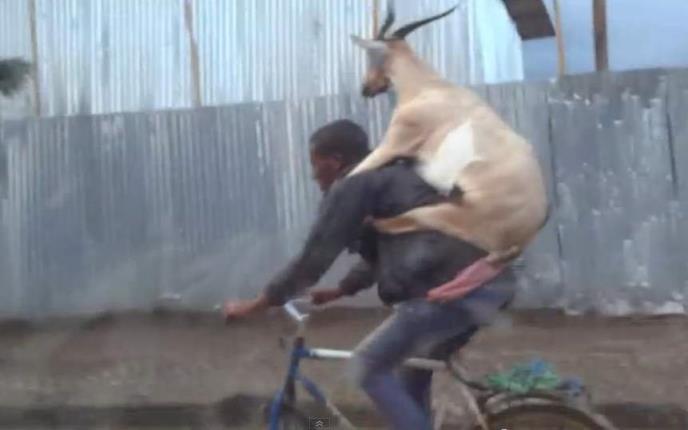 snimak koji prikazuje čoveka koji na leđima nosi kozu, poput ranca, snimljen je u Adis Abebi. Ovako nešto se ne viđa svaki dan, ili nikada