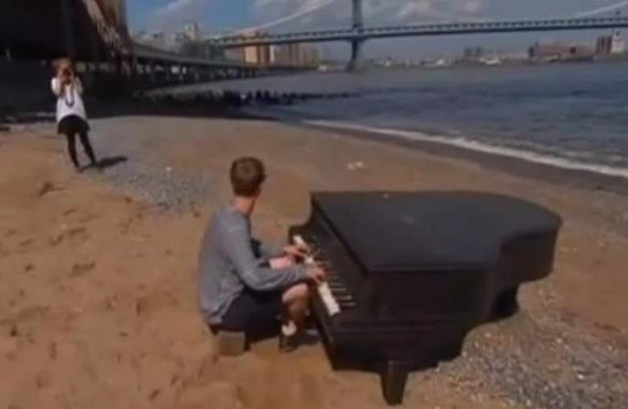 Njujorčani imaju novu atrakciju - klavir na plaži ispod Bruklinskog mosta.