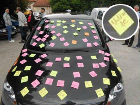 Naime, vlasnik crnog golfa ostao je zatečen kada je ugledao svoj automobil izlepljen stikerima sa ljubavnim porukama. Njegov golf na parkingu "Travunije" bio je "ukrašen" sa "hiljadu i jednim" stikerom, malim papirićima koji obično služe kao podsetnici. Vlasnik ovog automobila će ovaj podsetnik dugo pamtiti. Na svakom od tih papirića bilo je napisano "Volim te", "Jedini", "Prvi do srca"… pa čak i poneka lјubavna, malo duža, poruka.