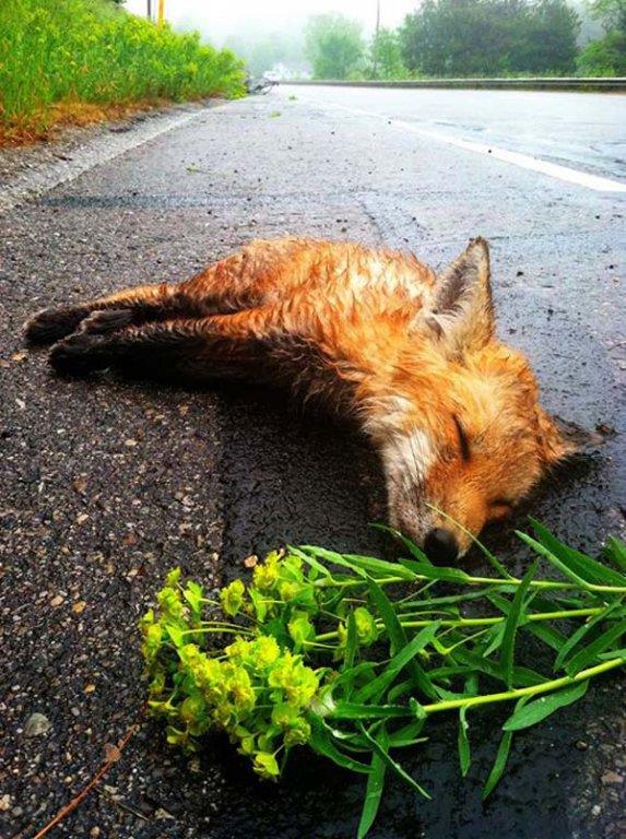 "Ovog jutra dok sam vozio svoj bicikl, naleteo sam na malu lisicu koja je udarena automobilom. Njene oči su se polako otvarale i zatvarale, drhtala je bez kontrole i srce joj je jako lupalo. Sve što sam želeo da uradim je da joj pomognem, ali sam ubrzo shvatio da ništa ne mogu da učinim. Seo sam pored nje i pružio joj toplinu i društvo u njenim poslednjim sekundama života. Njene oči su se odjednom zatvorile, drhtanje je prestalo, i dok sam je milovao, bukvalno sam osetio njen poslednji otkucaj srca. Počivaj u miru mala lisice…"
