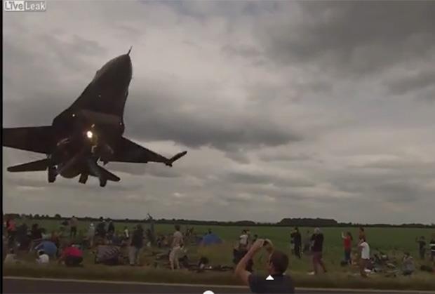 Dok su mirno gledali kako razni avioni lete iznad njih i uživali u akrobacijama, u jednom trenutku na njih se ustremio robusni američki F-16.