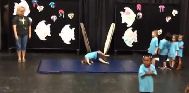 Pogledajte ovu preslatku, ali nespretnu devojčicu kako svim silama pokušava da uradi kolut napred.
