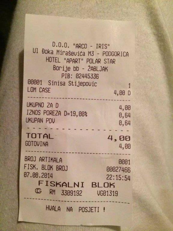 Jedan hotel na Žabljaku, verovatno je jedini objekat u Crnoj Gori, koji u registar kasi ima unesenu i stavku "lom čaše".