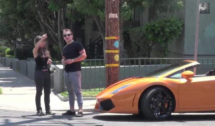 Poznati šaljivdžija seo je na haubu Lambordžinija i pitao devojku za smer. Nakon toga pitao ju je da li joj treba prevoz, a nakon što je pristala sačekalo ju je iznenađenje
