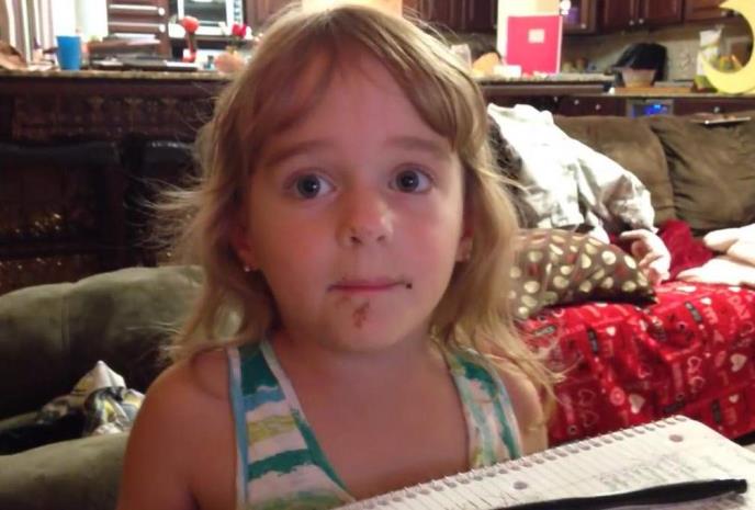Reč je o devojčici koja je, evidentno, pojela čokoladnu krofnu, ali nikako ne želi to da prizna svojoj mami