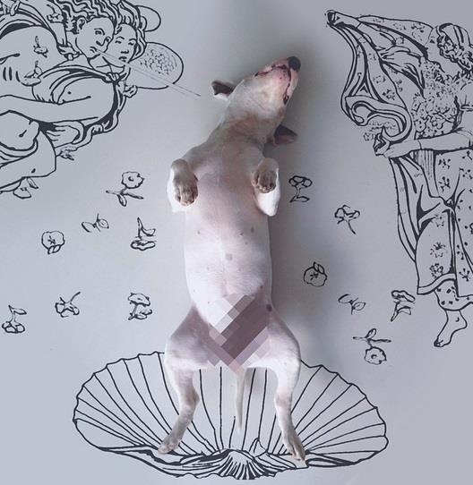 Kombinujući crtež i svog psa u najrazličitijim pozama, umetnik na najbolji način prikazuje svog ljubimca i njegovu rasu u drugačijem svetlu.