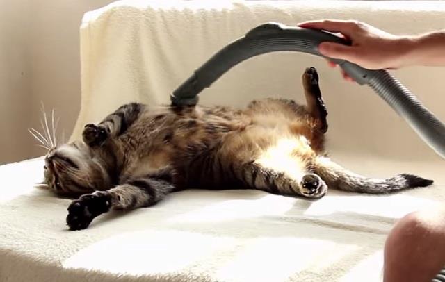 Naime, mačka po imenu Bobo prosto obožava usisivač, kao i da je usisavaju. Ova mačka sama namešta i okreće kako joj odgovara, dok je njena gazdarica usisava.