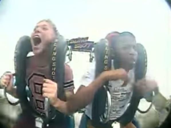 Ovi mladići odlučili su da se provozaju na 'praćki' ali nisu računali da će biti toliko strašno, ili pak nisu znali da se plaše visine, pa se jedan i onesvestio... i to više puta