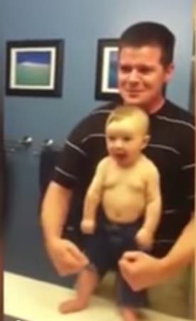 Naime, Hedli ima samo osam meseci i kao i sva deca uživa u oponašanju starijih, a naročito voli da pokazuje mišiće kao njegov tata.