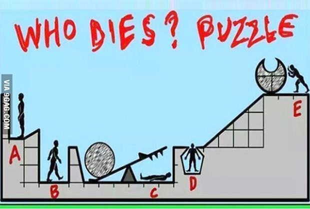 Na fotografiji su osobe A, B, C, D i E. Ako se primene zakoni fizike, odnosno gravitacije, matematike... neko će umreti. Ako pogodite, vi ste samo jedan od 2 odsto "odabranih". Pokušajte!