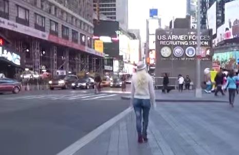 Mladi model Lea Jung bila je deo eksperimenta koji je trebalo da pokaže koliko Njujorčani obraćaju pažnju na ulici na svoje sugrađanje. Ona je na ulicu izašla bez pantalona, ali su umetnici u studiju "Body of Art", koji se inače bavi oslikavanjem tela, nacetali na njenim nogama farmerke.