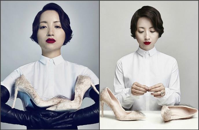 Kineska umetnica Zu Tian napravila je upravo takve cipele, a rezultat je odvratan. Svaku dlaku ubacivala je jednu po jednu u štikle od silikona boje kože